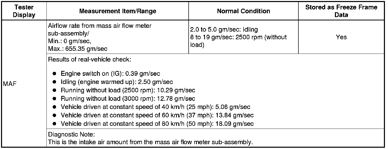 Normal Condition: If no conditions are specifically stated for "idling", the shift lever should be in N or P, the A/C switch should be off and all accessory switches should be off.