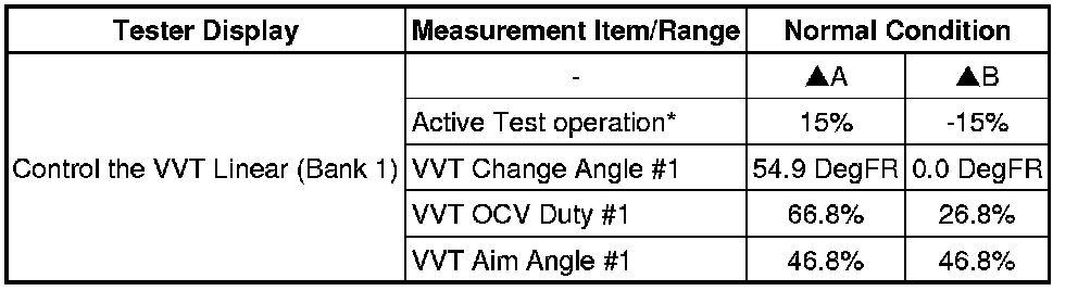 * *: Change the control value for Control the VVT Linear to 15% or -15%.