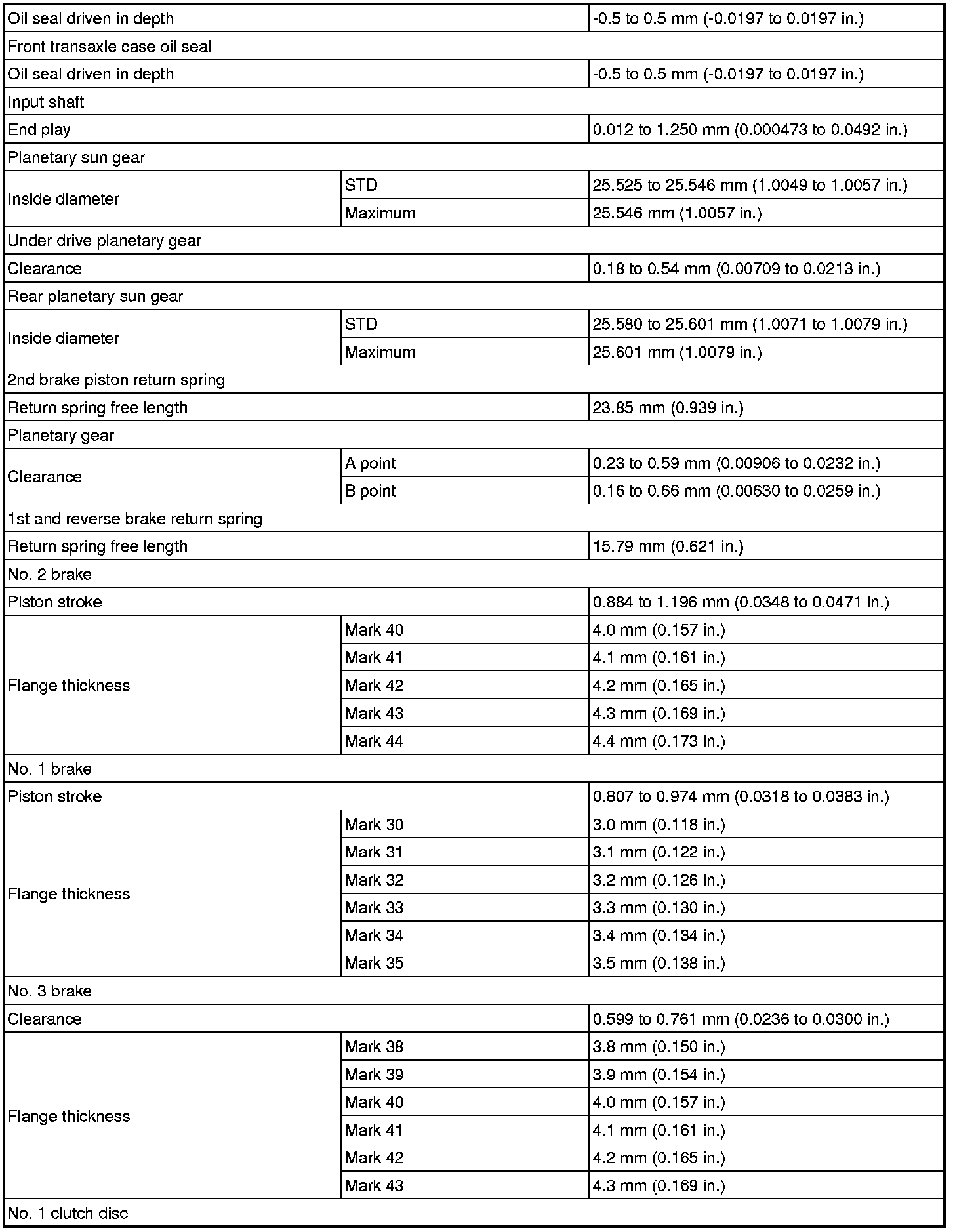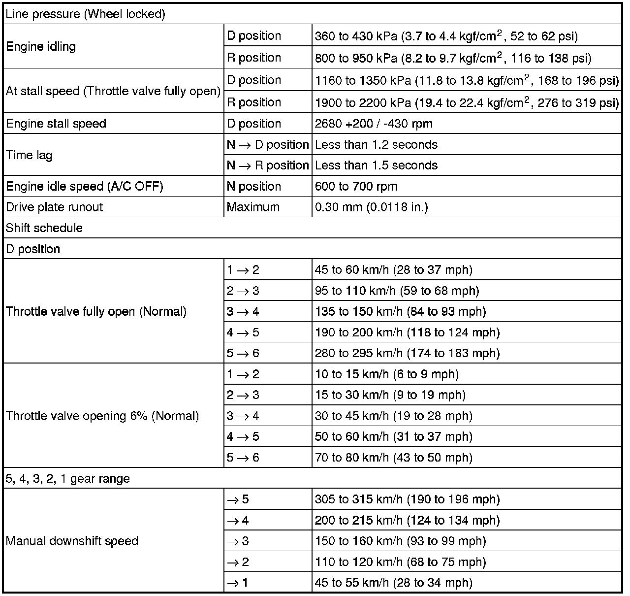 SPECIFICATIONS: U660E AUTOMATIC TRANSMISSION / TRANSAXLE: SERVICE DATA