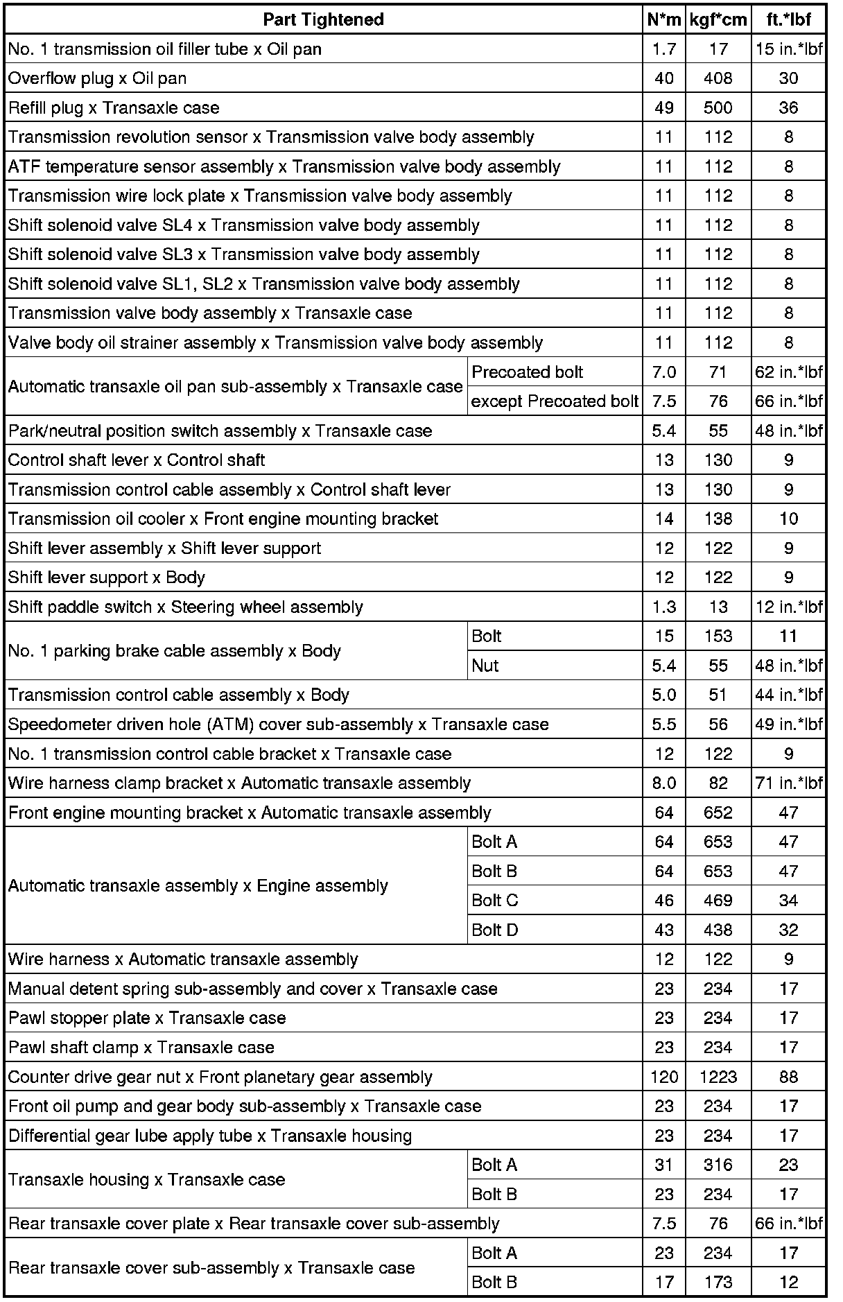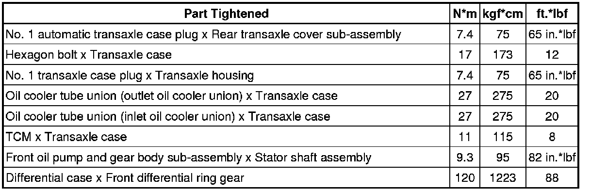 SPECIFICATIONS: U660E AUTOMATIC TRANSMISSION / TRANSAXLE: TORQUE SPECIFICATIONS