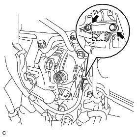 (f) Remove the 2 bolts and generator assembly.