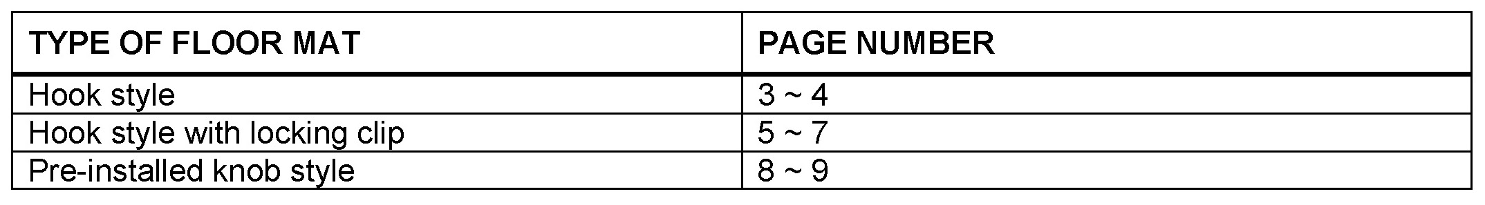 - Always verify the floor mat to assure it is designed specifically for the model and model year it is being installed in.