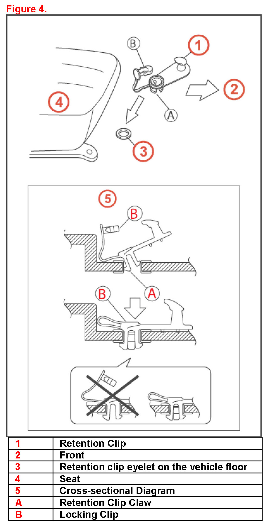 2. Attached the retention clip to the floor by inserting the retention clip claws into the floor eyelet.