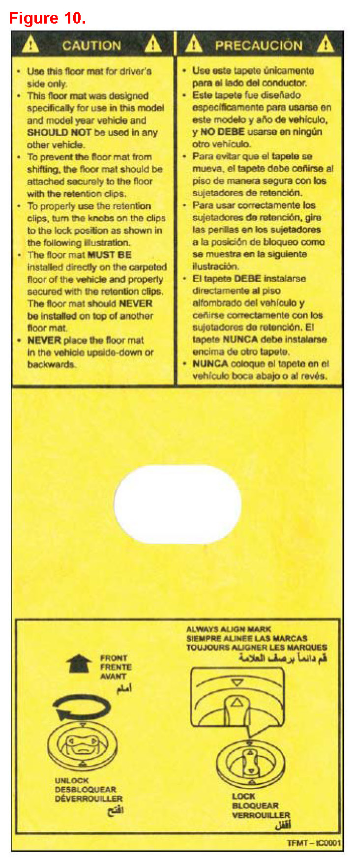 If applicable, DO NOT remove the yellow "Caution" tag from the floor mat. This should only be removed by the customer.