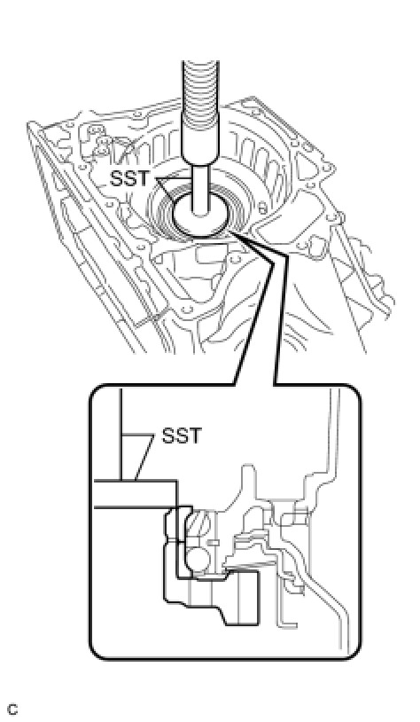 (a) Using SST, remove the counter driven gear rear tapered roller bearing outer race from the transaxle case.