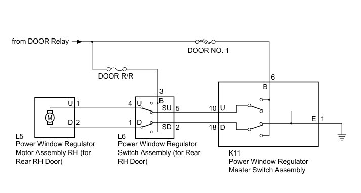 When the ignition switch is ON, the power window regulator motor assembly RH (for rear RH door) is operated by the power window regulator switch assembly (for rear RH door).