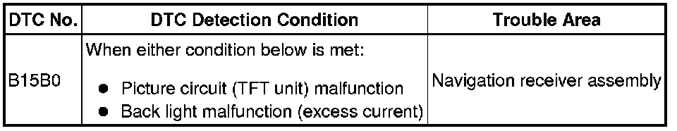 This DTC is stored when a malfunction occurs in the navigation receiver assembly.