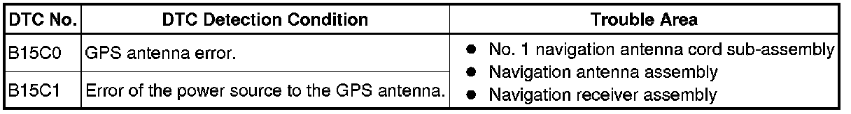 These DTCs are stored when a malfunction occurs in the navigation antenna assembly.