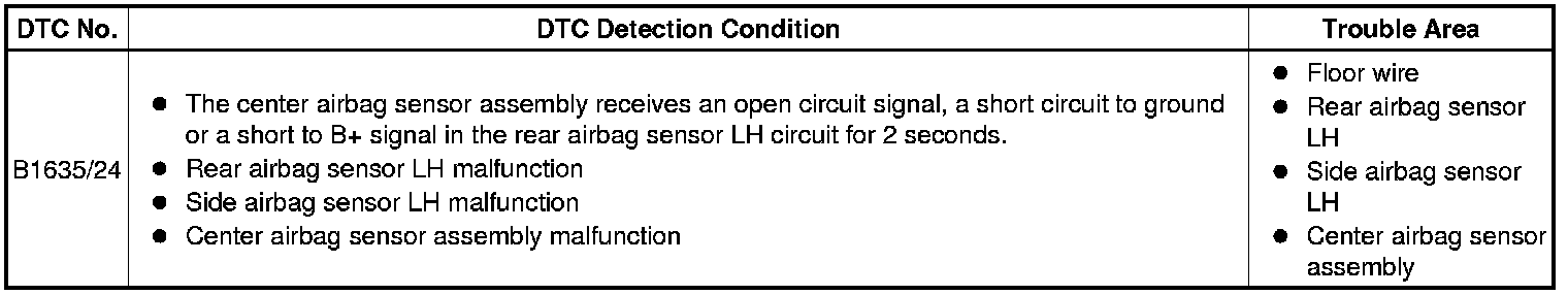 SUPPLEMENTAL RESTRAINT SYSTEMS: AIRBAG SYSTEM: B1635/24: Rear Airbag Sensor LH Circuit Malfunction