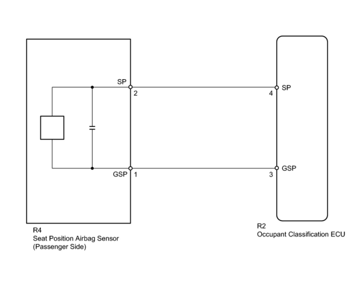 The seat position sensor circuit consists of the occupant classification ECU and the seat position airbag sensor (passenger side).