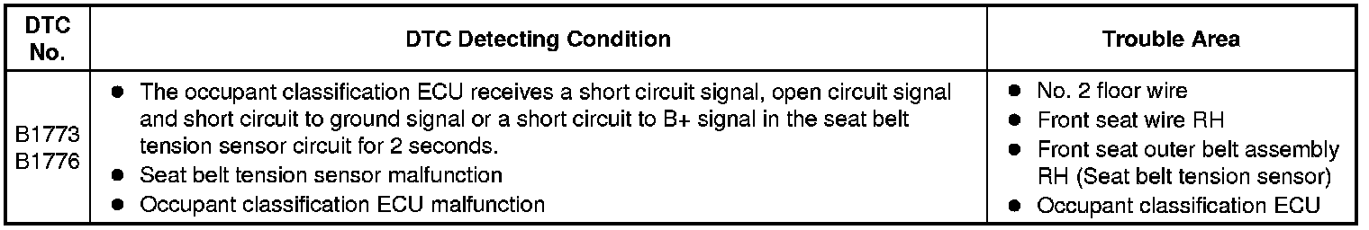SUPPLEMENTAL RESTRAINT SYSTEMS: OCCUPANT CLASSIFICATION SYSTEM: B1773, B1776: Belt Tension Sensor Circuit Malfunction