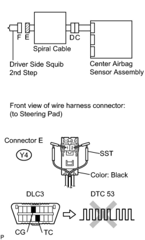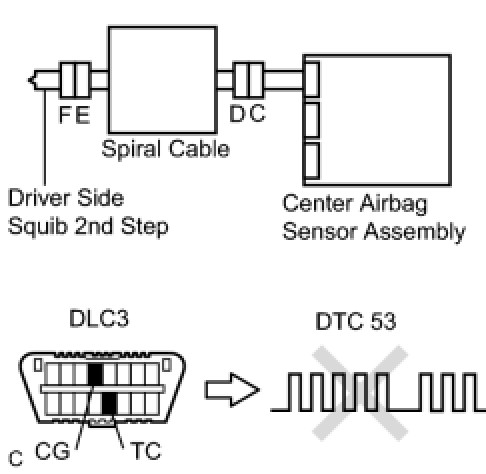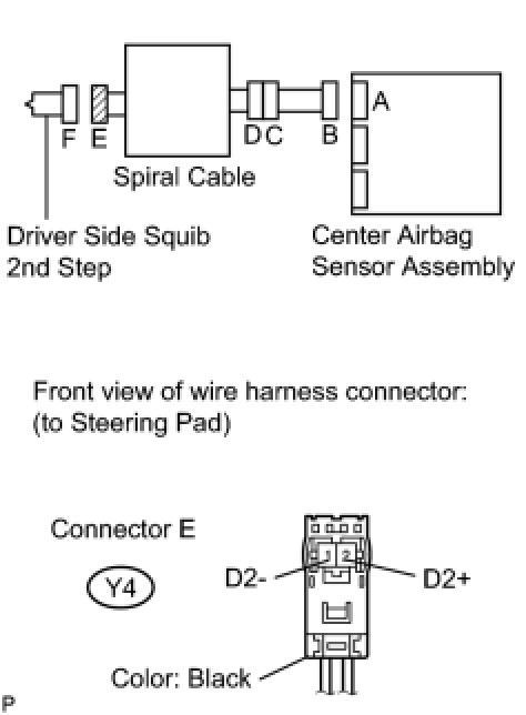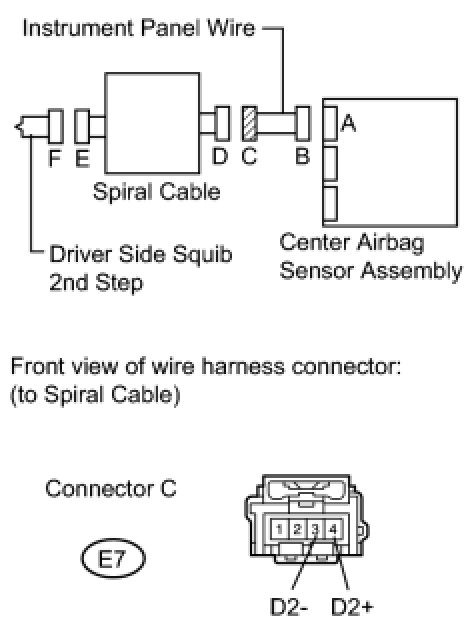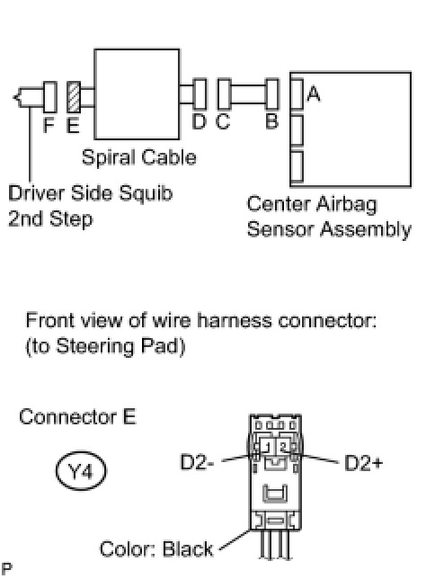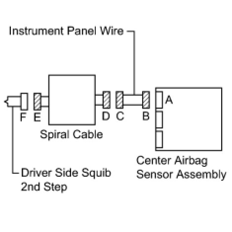 * The driver side squib 2nd step circuit consists of the center airbag sensor assembly, the spiral cable and the steering pad.