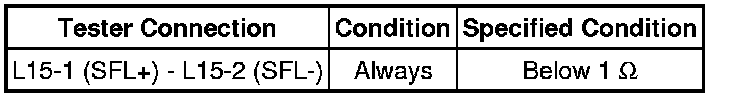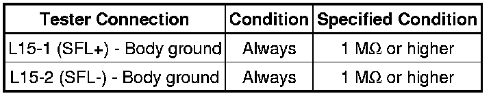 Never connect the tester to the front seat side airbag assembly LH (side squib LH) for measurement, as this may lead to a serious injury due to airbag deployment.