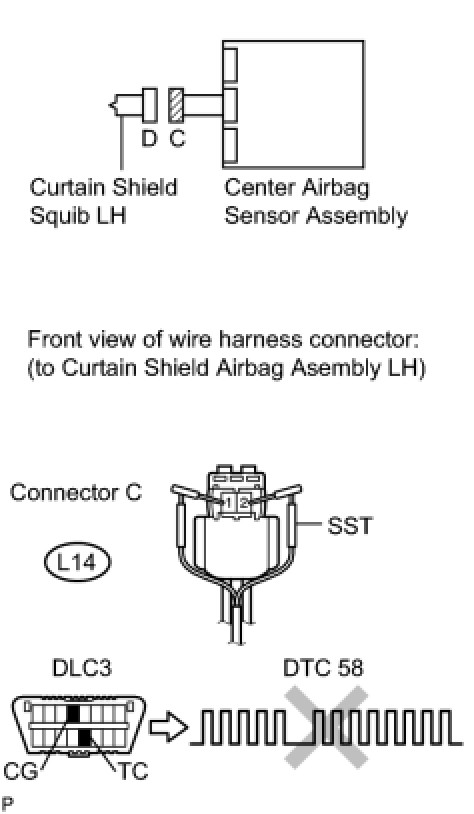 (c) Check that the connectors are properly connected to the curtain shield airbag assembly LH and center airbag sensor assembly.
