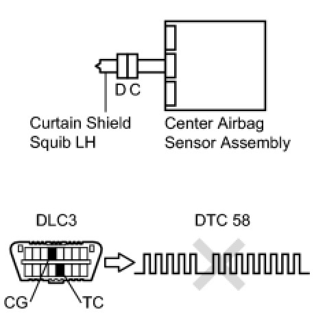 These DTCs are recorded when a malfunction is detected in the curtain shield squib LH circuit.