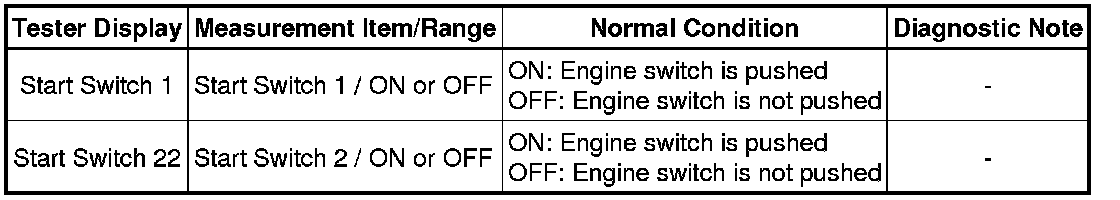(b) Check the Data List for proper functioning of the start switch.