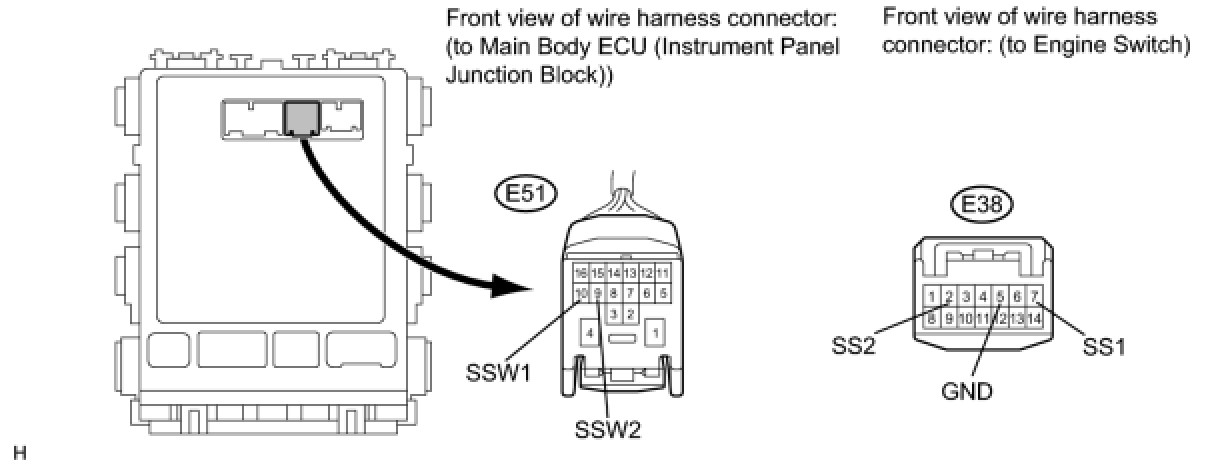 This DTC is output when 1) a malfunction is detected between the main body ECU (instrument panel junction block) and the engine switch; or 2) either of the switches inside the engine switch is malfunctioning.