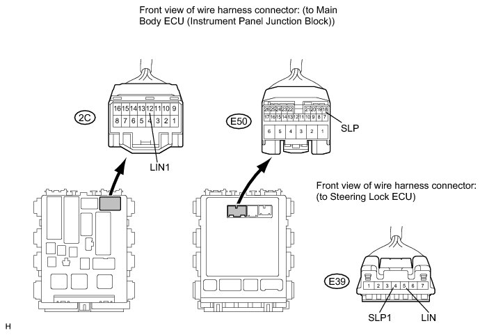 (a) Disconnect the E50, 2C and E39 ECU connectors.