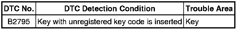 This DTC is output when a key with a key code that has not been registered in the ECU is inserted into the ignition key cylinder.