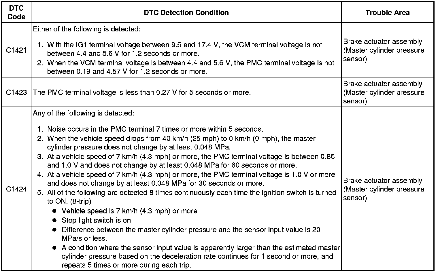 C1424 - Master Cylinder Pressure Sensor Output Malfunction