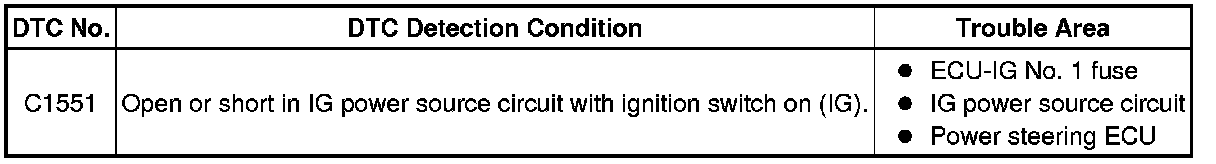 POWER ASSIST SYSTEMS: POWER STEERING SYSTEM (for 2ZR-FE): C1551: IG Power Supply Voltage Malfunction