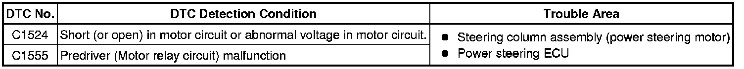 POWER ASSIST SYSTEMS: POWER STEERING SYSTEM (for 2ZR-FE): C1524, C1555: Motor Circuit Malfunction