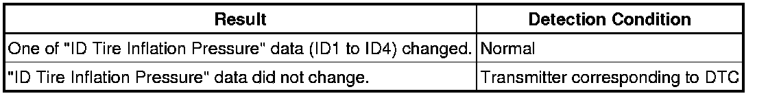 (j) When the "ID Tire inflation Pressure" data (ID1 to ID4) has changed, repeat this procedure to identify the tire pressure warning valve and transmitter that corresponds to the DTC.