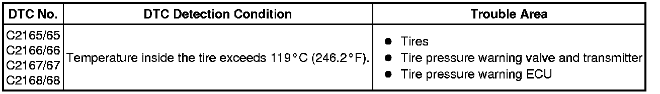 TIRE PRESSURE MONITORING: TIRE PRESSURE WARNING SYSTEM: C2165/65-C2168/68: Abnormal Temperature Inside ID1 Tire
