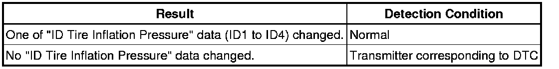 (j) When the "ID Tire Inflation Pressure" data (ID1 to ID4) has changed, repeat this procedure to identify the tire pressure warning valve and transmitter that corresponds to the DTC.