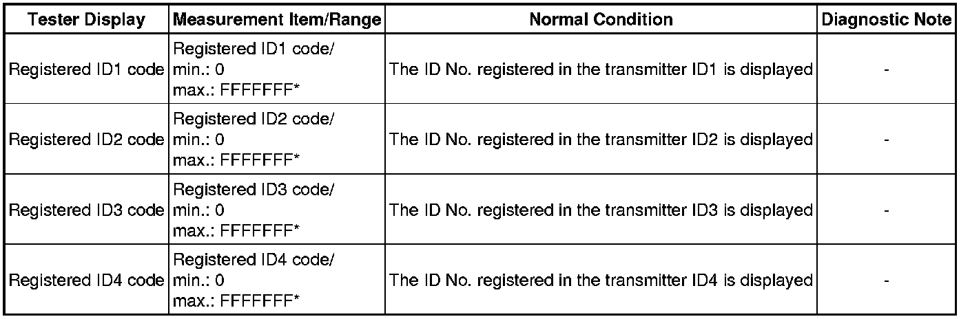 When the ECU detects that transmitter ID code is not registered in the ECU, a DTC is output.
