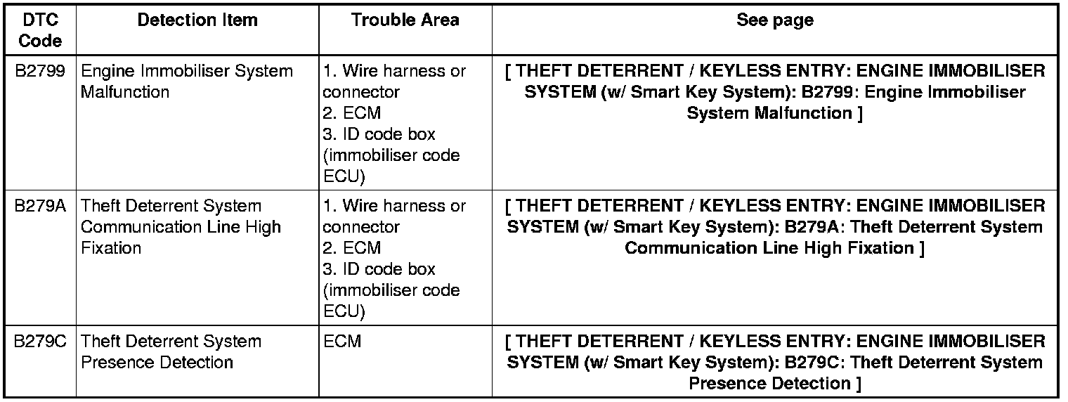 THEFT DETERRENT / KEYLESS ENTRY: ENGINE IMMOBILISER SYSTEM (w/ Smart Key System): DIAGNOSTIC TROUBLE CODE CHART