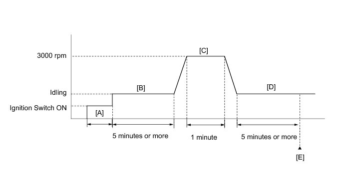 7. With the vehicle stationary, depress the accelerator pedal and maintain an engine speed of 3000 rpm for 1 minute [C].