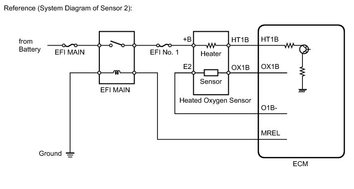 * The ECM uses pulse width modulation to adjust the current through the heater. The heated oxygen sensor heater circuit uses a relay on the +B side of the circuit.