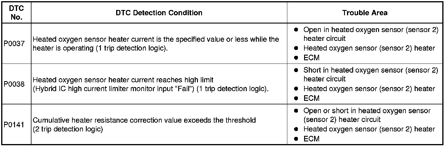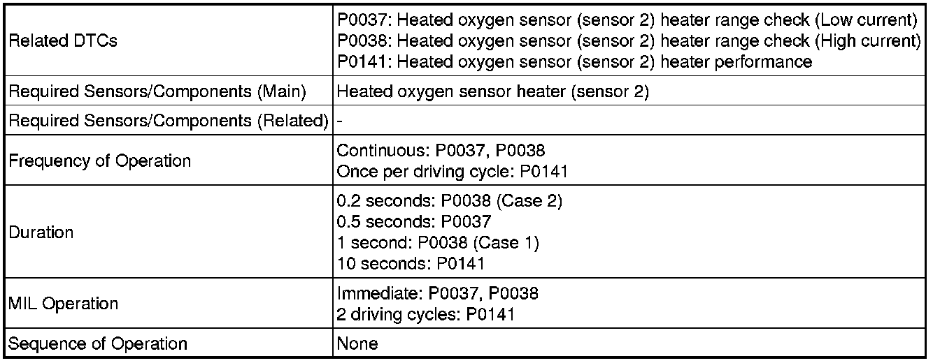 Heated Oxygen Sensor Heater Range Check (P0037 and P0038):