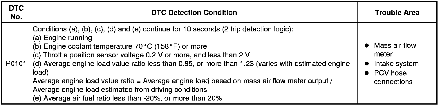 2ZR-FE ENGINE CONTROL: SFI SYSTEM: P0101: Mass Air Flow Circuit Range / Performance Problem