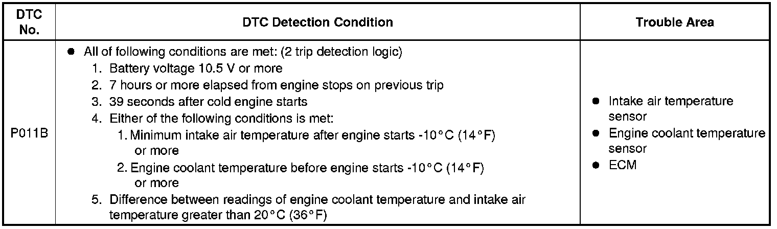 2ZR-FE ENGINE CONTROL: SFI SYSTEM: P011B: Engine Coolant Temperature / Intake Air Temperature Correlation