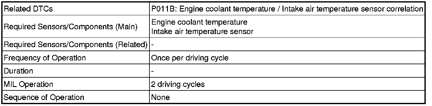 P011B - Engine Coolant Temperature / Intake Air Temperature Correlation