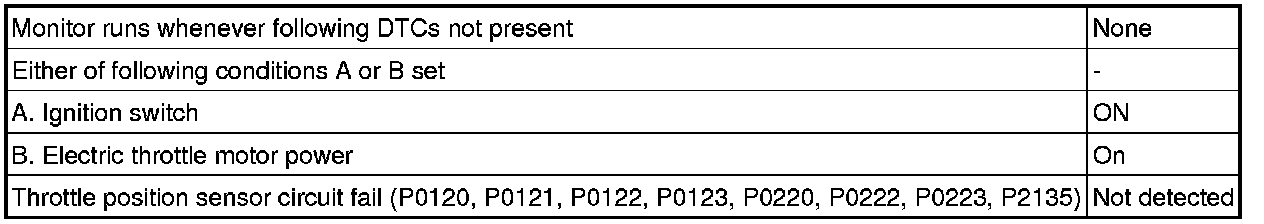 The ECM uses the throttle position sensor to monitor the throttle valve opening angle. There are several checks that the ECM performs to confirm the proper operation of the throttle position sensor.