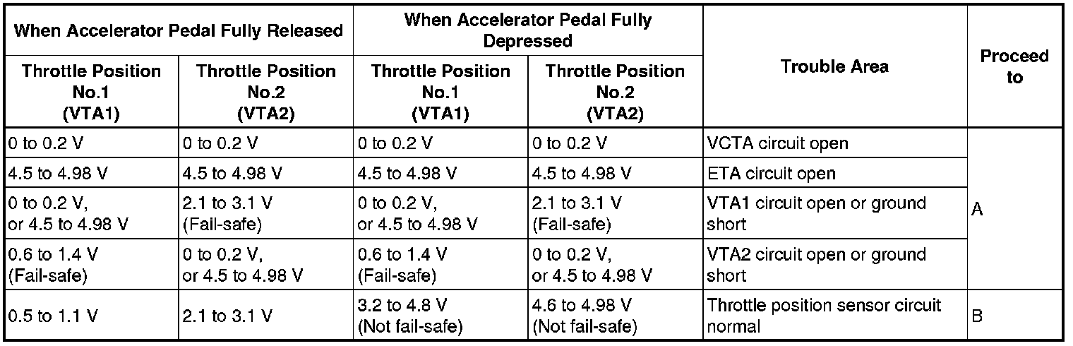 - VTA1 and VTA2 each have a specific voltage range. If VTA1 or VTA2 is outside the normal operating range, the ECM interprets this as a malfunction in the sensor circuit, and stores a DTC.