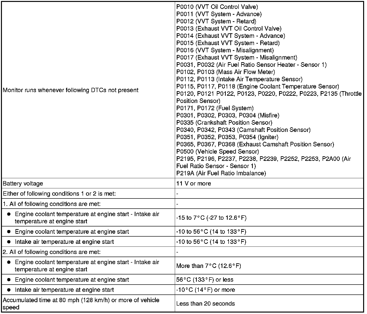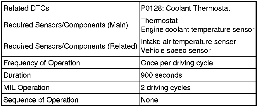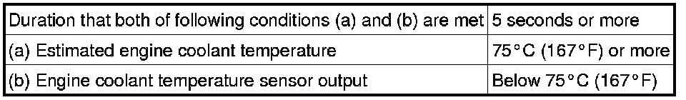 This DTC is set when the engine coolant temperature does not reach 75°C (167°F) despite sufficient engine warm-up time having elapsed.
