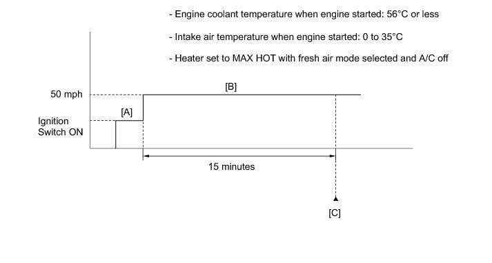 7. Start the engine and drive the vehicle at 50 mph (80 km/h) for 15 minutes [B].