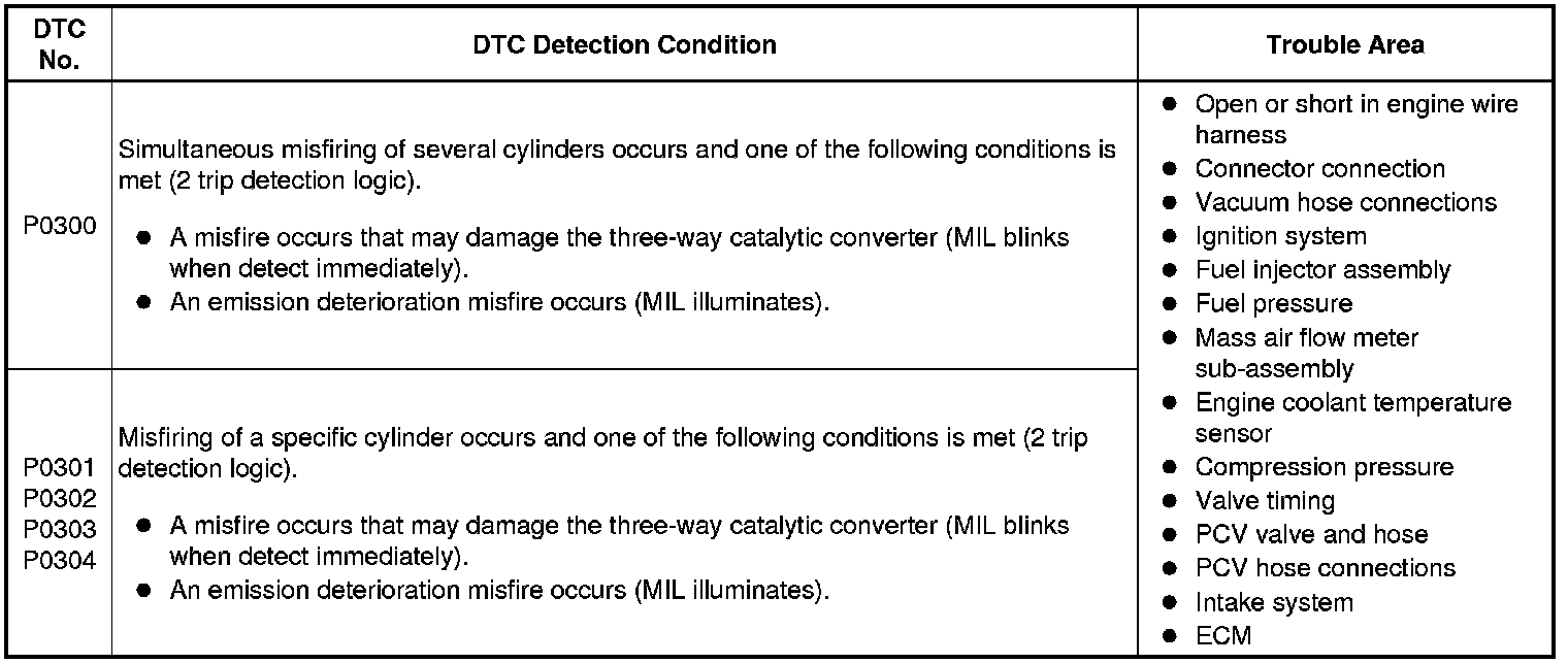 2ZR-FE ENGINE CONTROL: SFI SYSTEM: P0300-P0304: Random / Multiple Cylinder Misfire Detected