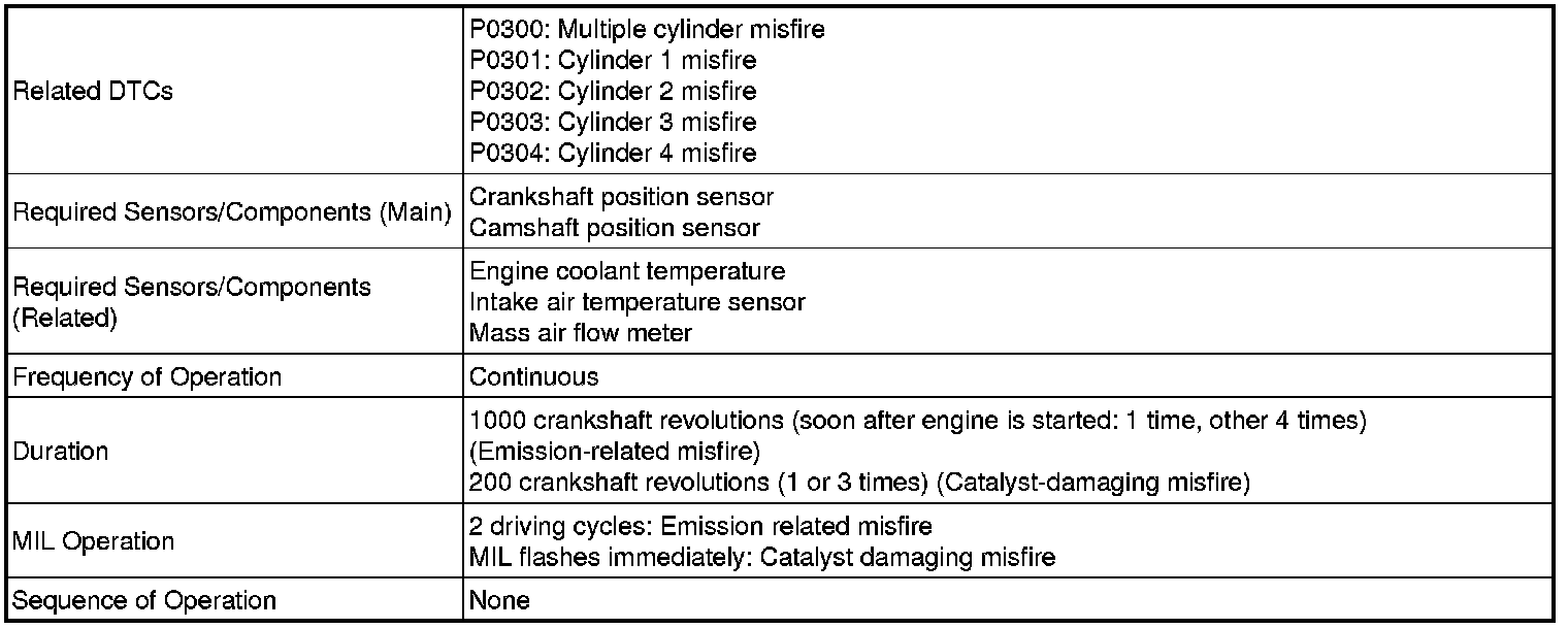 - Within the first 1000 crankshaft revolutions of the engine starting, an excessive misfiring rate (approximately 1000 misfires per 1000 crankshaft revolutions) occurs once.