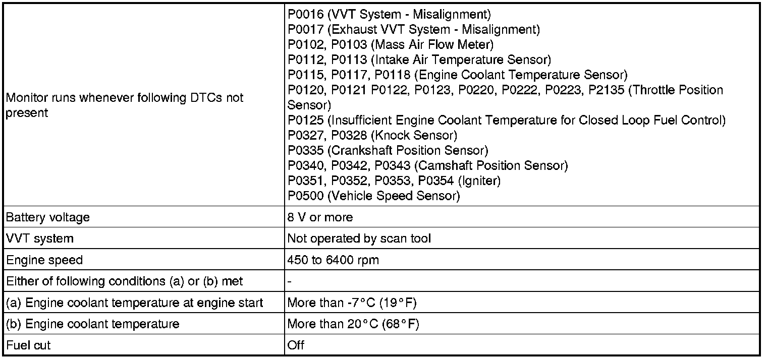 * If the freeze frame data record of the Engine Run Time is below 120 seconds, the misfire may be detected immediately after the engine is started.