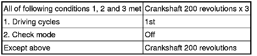 - In every 200 crankshaft revolutions at a normal engine speed, the threshold misfiring percentage is recorded 3 times.