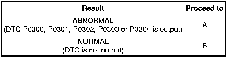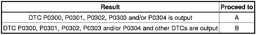 If any DTCs other than P0300, P0301, P0302, P0303 and P0304 are output, troubleshoot those DTCs first.