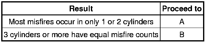 (g) Read each value for Cylinder #1 (to #4) Misfire Count displayed on the Techstream. If no misfire counts occur in any cylinders, perform procedure [A] and [B], and then check the misfire counts again.