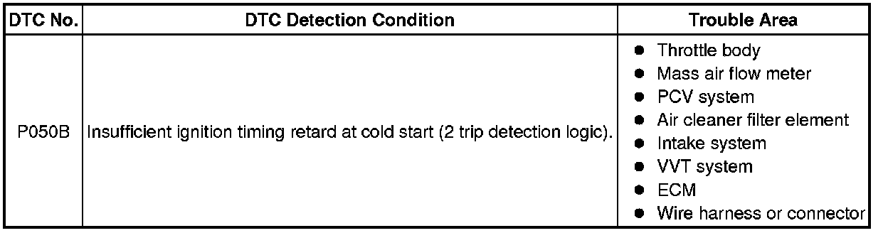 2ZR-FE ENGINE CONTROL: SFI SYSTEM: P050B: Cold Start Ignition Timing Performance