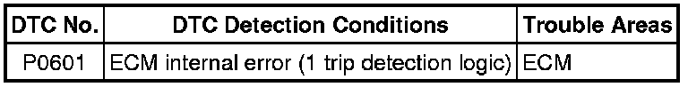2ZR-FE ENGINE CONTROL: SFI SYSTEM: P0601: Internal Control Module Memory Check Sum Error