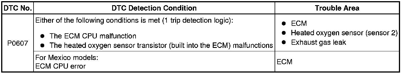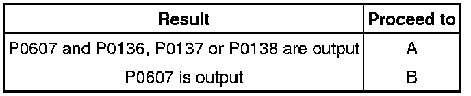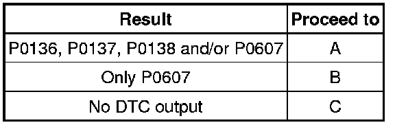 * If DTC P0607 and P0136, P0137 or P0138 are output, the output voltage of the heated oxygen sensor may remain close to 0 V or become high (around 1 V or higher).